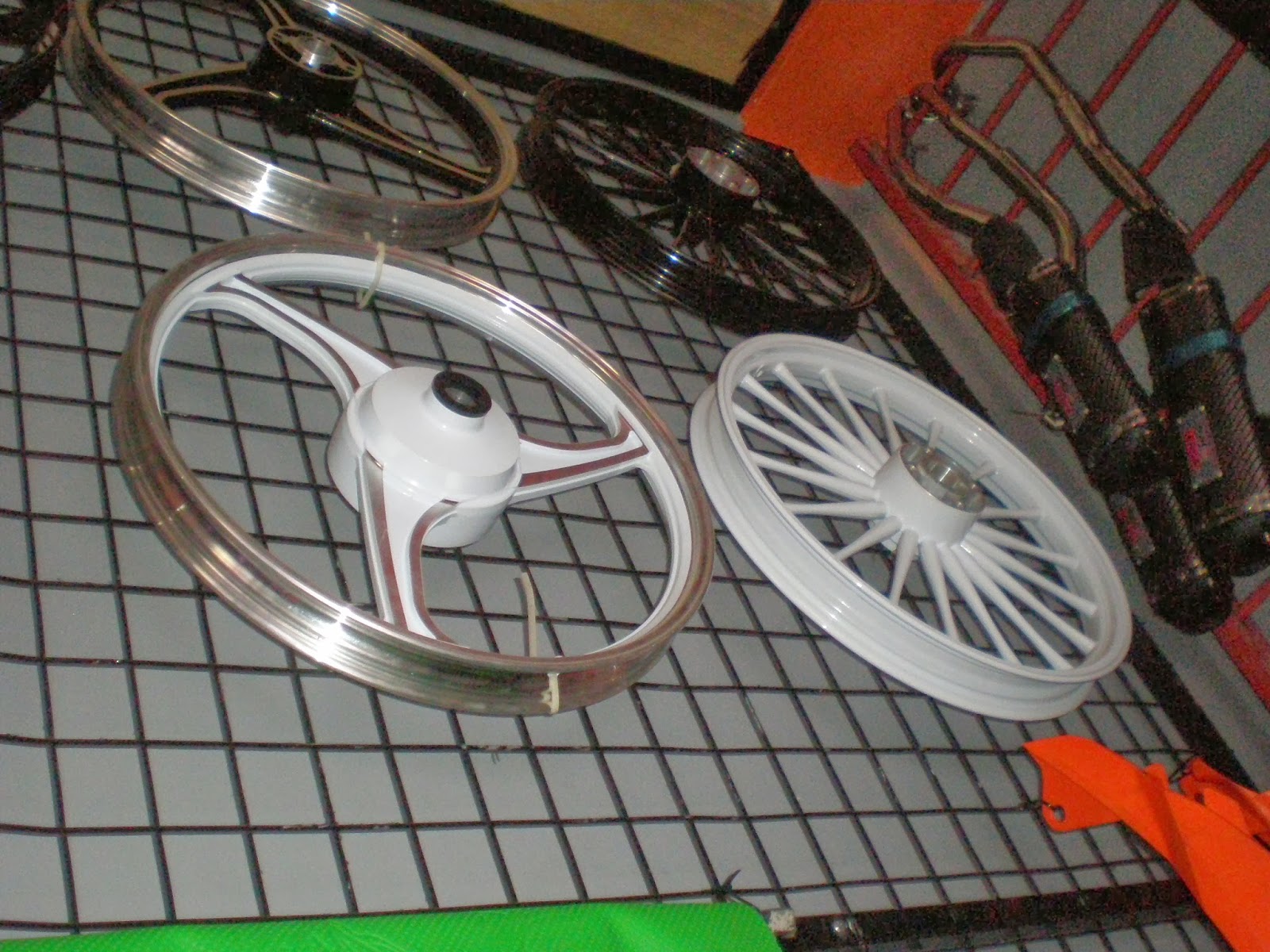 Prior to the 1990s, supermoto bikes, including the precursor motorcycles used in Superbikers, were converted open-class two-stroke motocross or enduro bikes desired for their lightweight and jumping abilities. The motorcycles currently used for Supermoto racing are predominantly single-cylinder 4 stroke powered dirtbikes with 17" or 16.5" wheels. The 17" rims allow the use of up to 5.5" wide superbike road racing slicks. Slick tires are often hand grooved on the rear tire to facilitate slightly better acceleration on the dirt stretches of a supermoto course. Suspension is lowered and slightly stiffened in comparison with a stock dirt bike, and braking power is improved with oversize front brake rotors and calipers. Despite the lack of trees on supermoto courses, 'bark busters' (hand guards) are frequently added to supermoto bikes due the extreme cornering angles achieved by riders. Hand guards also greatly improve survivability of the brake & clutch levers during a fall making supermoto bikes highly crash resistant and often able to quickly re-enter the fray during a race following a crash.